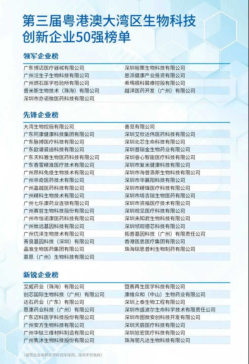 天科雅生物榮登第三屆粵港澳大灣區(qū)生物科技企業(yè)50強榜單